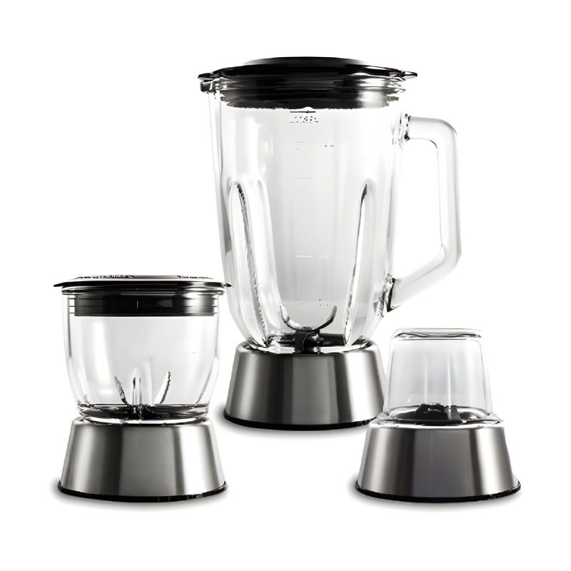 - توضیحات : موتور پرقدرت با توان ۱۵۰۰ وات، گوشت کوب با پایه استیل و چهار تیغه تیتانیومی، دور موتور در پانزده سرعت قابل تنظیم، دارای حالت توربو، سایز پایه گوشت کوب بزرگ میباشد که براحتی امکان استفاده در ظروف بزرگ و قابلمه را برای شما فراهم میکند، دارای ظرف مجزا برای تهیه انواع شیک و اسموتی با چهار تیغه از جنس تیتانیوم، لیوان میکس مدرج بهمراه درب پوش
